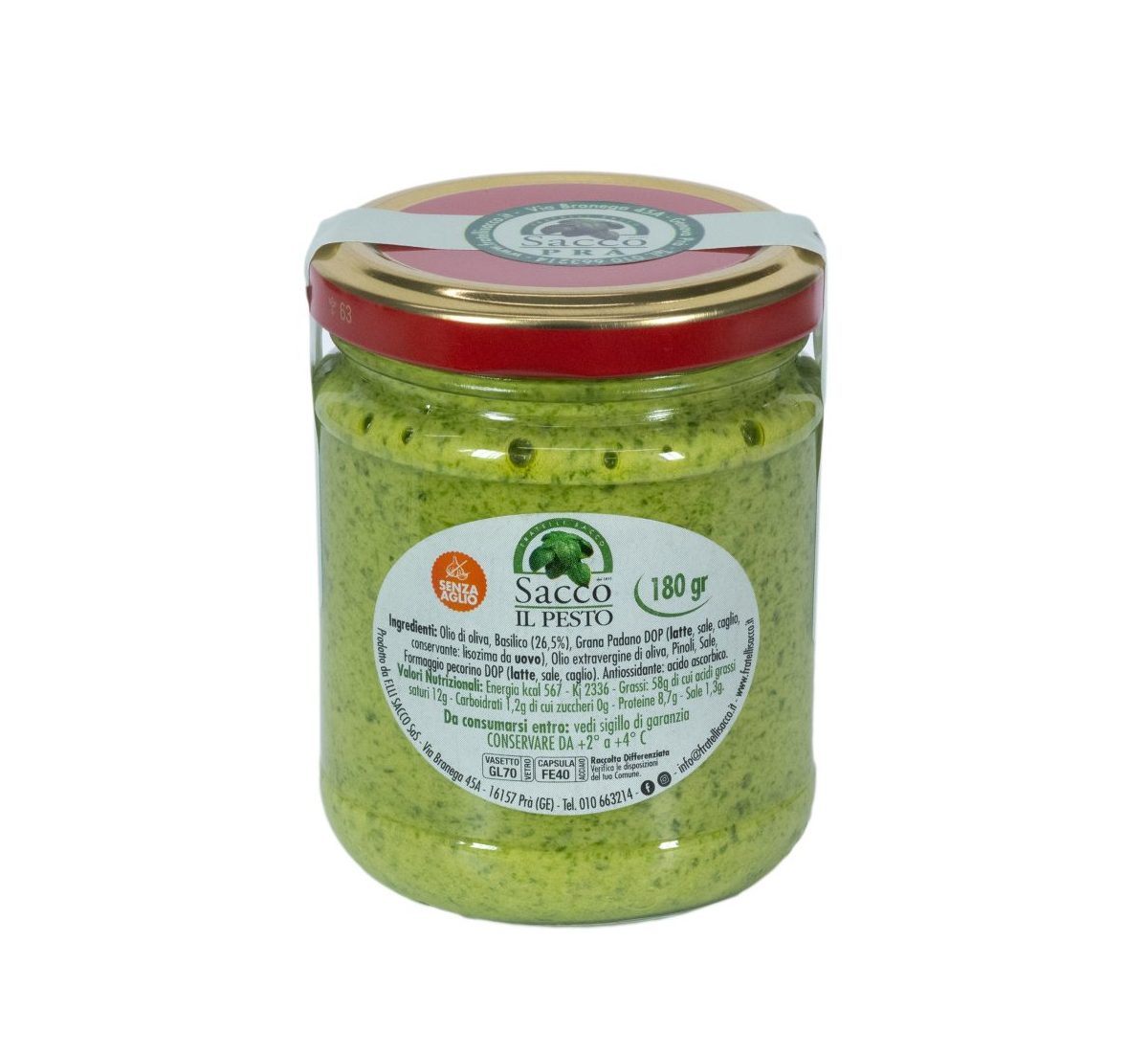 Il nostro Pesto Fresco Senza Aglio è un’autentica delizia artigianale, prodotta con cura utilizzando il pregiato basilico di Pra, coltivato nella nostra azienda agricola. Questo pesto è appositamente preparato senza l’aggiunta di aglio, ideale per chi ama i sapori più delicati. Gli ingredienti di alta qualità, come olio extravergine d’oliva, grana, pecorino e sale, si fondono armoniosamente per creare una crema di pesto dalla consistenza morbida e dal gusto equilibrato.